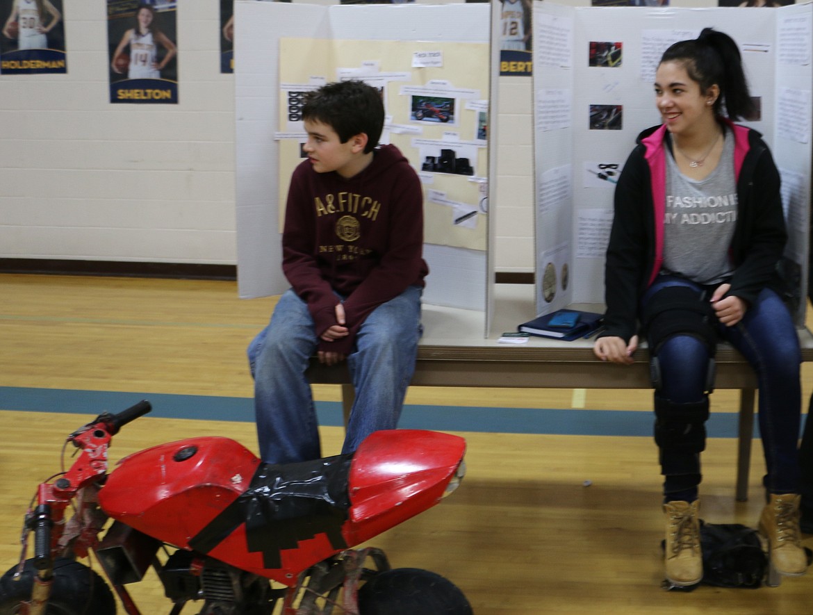 Some of the tech track students also brought their projects into the gym, but demonstrations would have required being outdoors. Tenth-grader Hunter Sutton showed off his SSR 125 pit bike, which he restored after it started burning oil, so he changed the piston and rings. When he put it back together, he said, it ran "like new." He also replaced the rear tire, he said. Sutton said he started the year working on his chainsaws in tech track, but decided to work on his pit bike recently when it "started turning into a pile of junk."