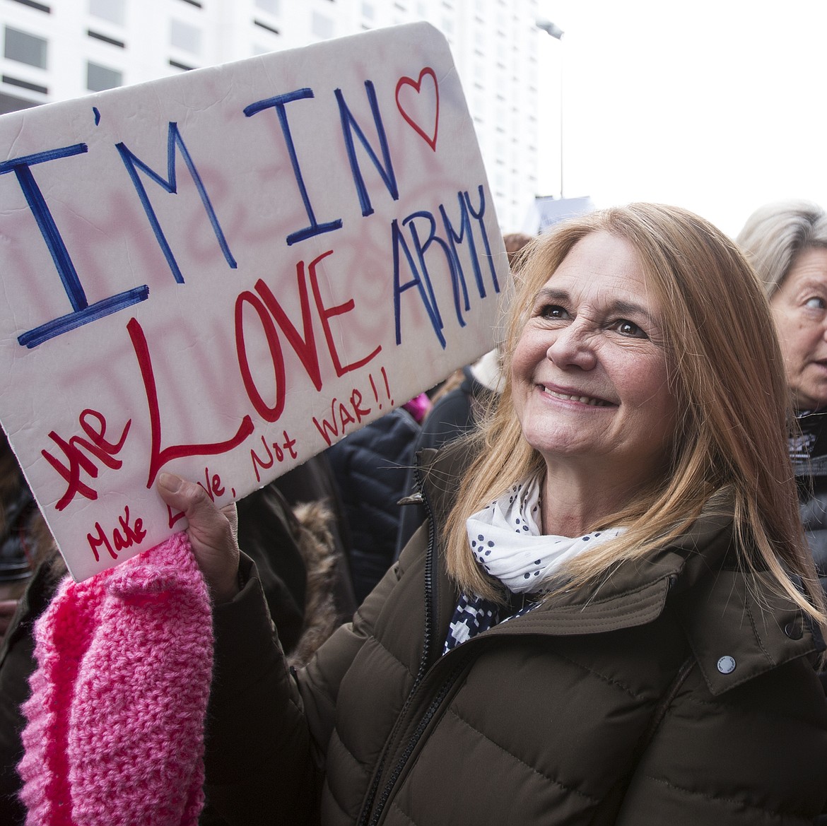 “It’s important to stand up for what you believe in,” Siri told the Press as she marched on the streets of Spokane with her sign that read ‘I’m in the love army.’ “I’m here for my daughters. I want them to be able to fight for themselves; it’s their world.”
