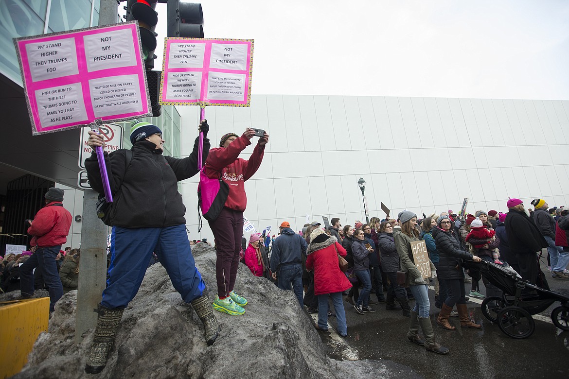 SPOKANE — Lisa Siri and her two grown daughters brought their signs to the Spokane Convention Center on Saturday and proudly walked among a sea of strangers to support women and other oppressed groups across the country and around the world.