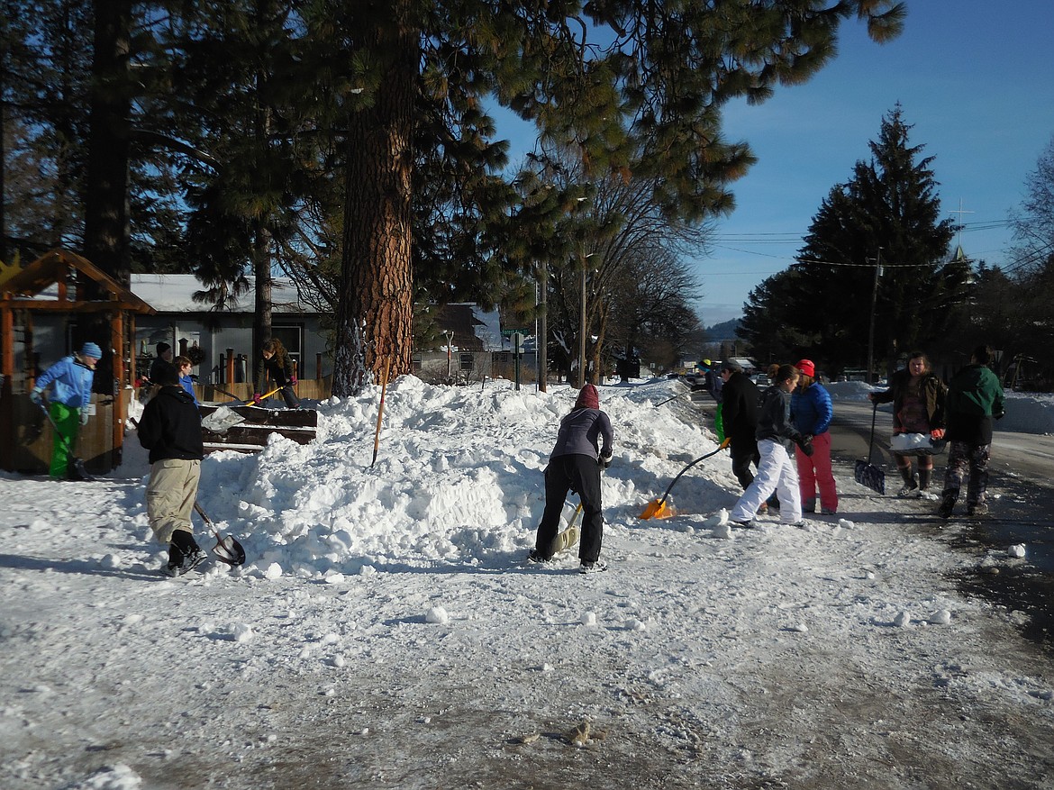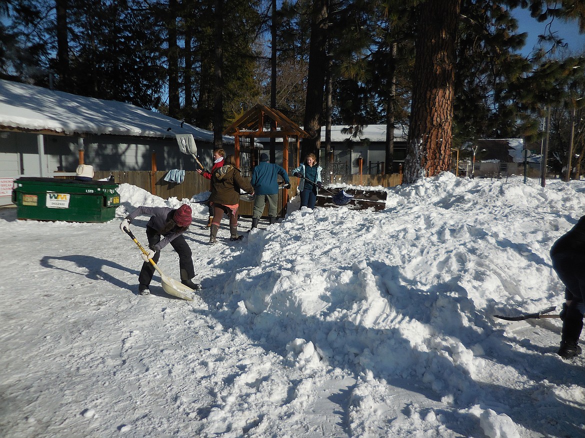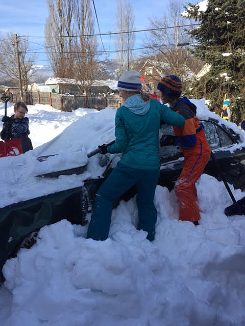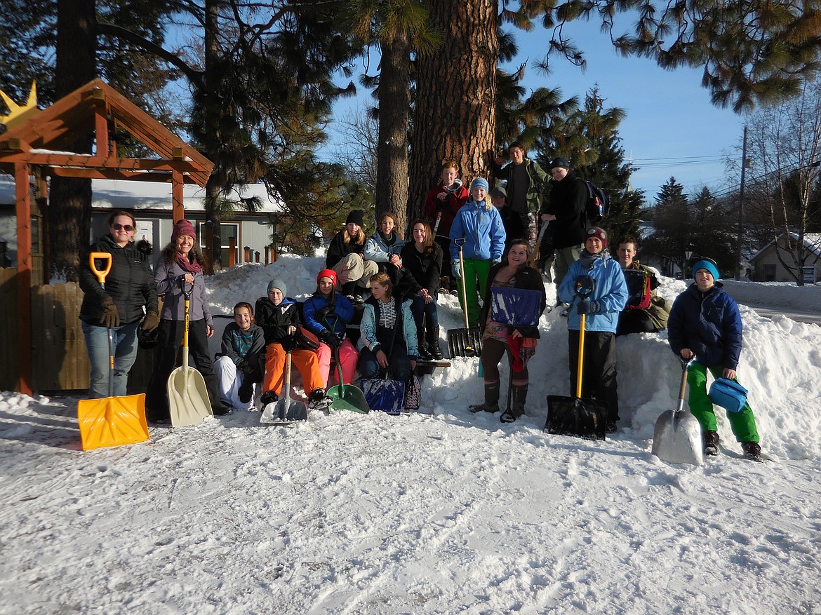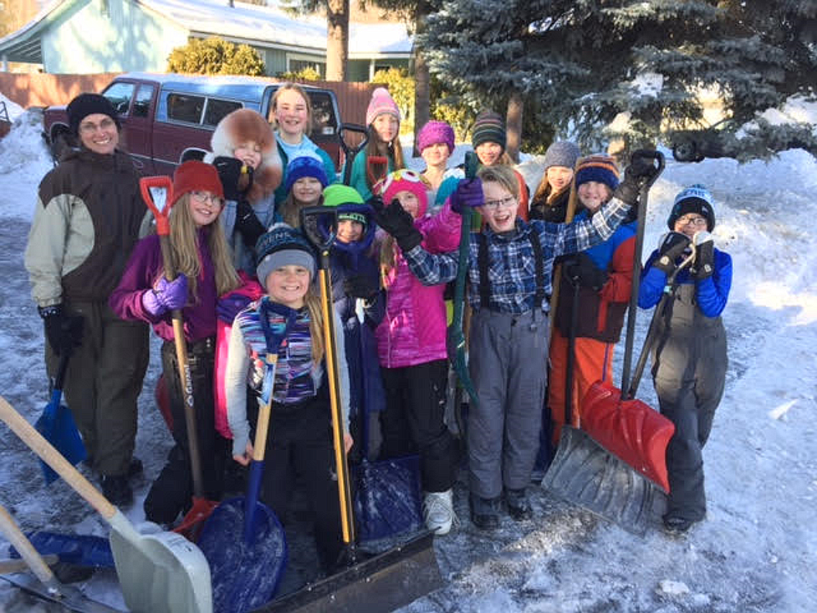 In addition to going to the homes of area seniors to to shovel snow, the fourth- through eighth-graders shoveled out the huge berms at the Sandpoint Area Seniors, Inc. and DayBreak Center parking lot on Main Street. They cleared the sidewalks and area where the benches and peace pole are located by the "SASi Elder Tree," as well as cleared the ice from the wheelchair ramp.