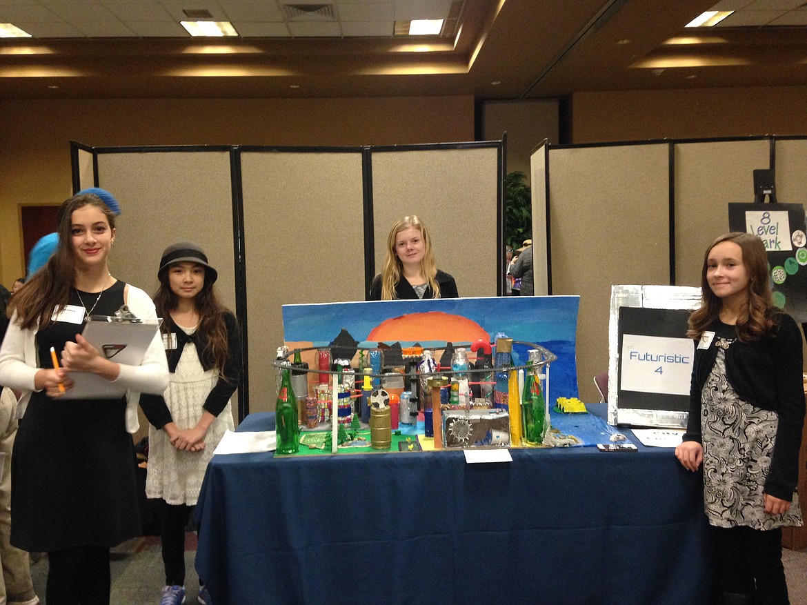 Kelsey said their city included an industrial island located a mile offshore so that it would not pollute the city, which was one aspect of the project the "special judges," who walked around and judged for special awards, liked most about it. Adeline said they also liked their energy concept of an "energizer" that uses sewage and waste, and Ayiana said the judges also praised their transportation concept of a hyperloop and magnetic cars.
