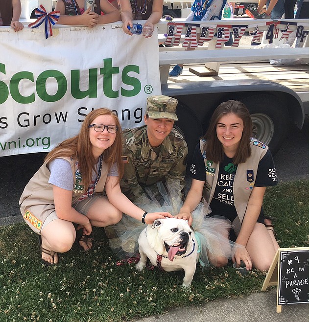 Edelman and Lulu joined the Girl Scouts of Eastern Washington and Northern Idaho in the American Heroes parade Tuesday morning in downtown Coeur d’Alene to knock off an item on Lulu’s new bucket list after discovering she only has a month to live.