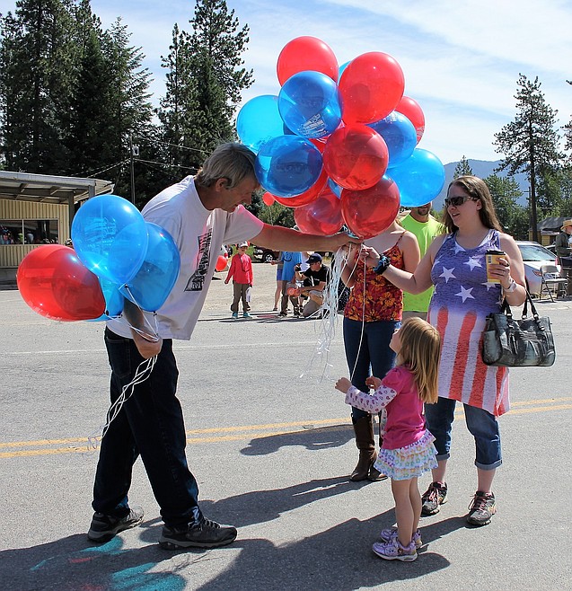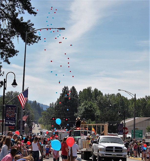 The festivities started at 11 a.m., after a town breakfast in the school cafeteria. St. Regis Fire Chief Jerry Dockter and other members from the fire department walked along the parade route and handed red and blue balloons to eager children. The holiday festivities are largely sponsored by the St. Regis Fire Department and members carried fire boots down the line asking for donations to help fund the fireworks display held at dusk in the town park.