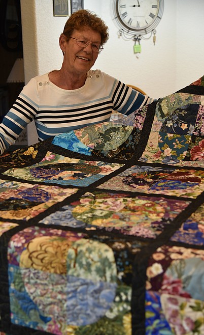 Each year, the quilt show features one or more members of the guild. This year’s featured quilter is Deleen Winters of Ronan. Although Deleen began sewing as a young adult, she did not become a “real” quilter until after she retired. She learned later that she had been something of an “accidental quilter” for years as she had made blankets that she pieced together, but she had never considered herself a quilter. That changed when she took a class in Arlee where she thought she was going to make cookies, ornaments and other Christmas decorations, but instead learned how to quilt.