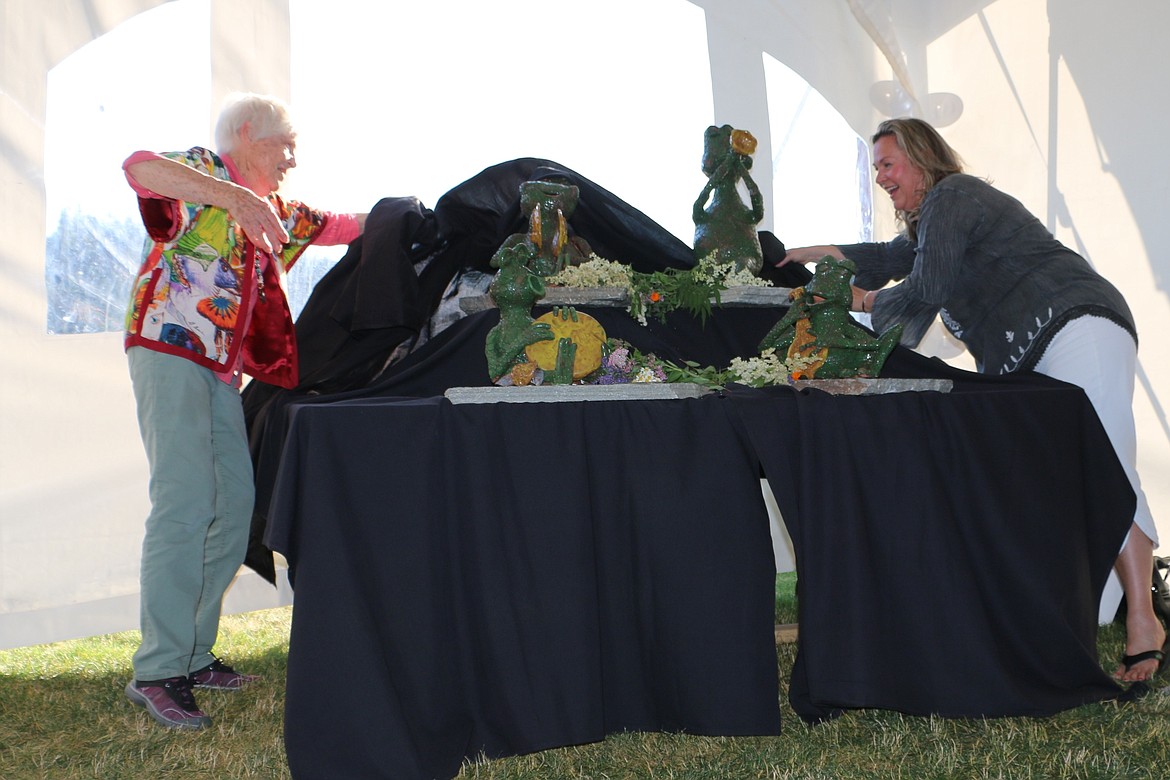 "When she saw the artwork, (florist Diane Miller) couldn't help but get a little creative with it," said Festival Executive Director Dyno Wahl, teasing the crowd as they anxiously awaited the reveal.