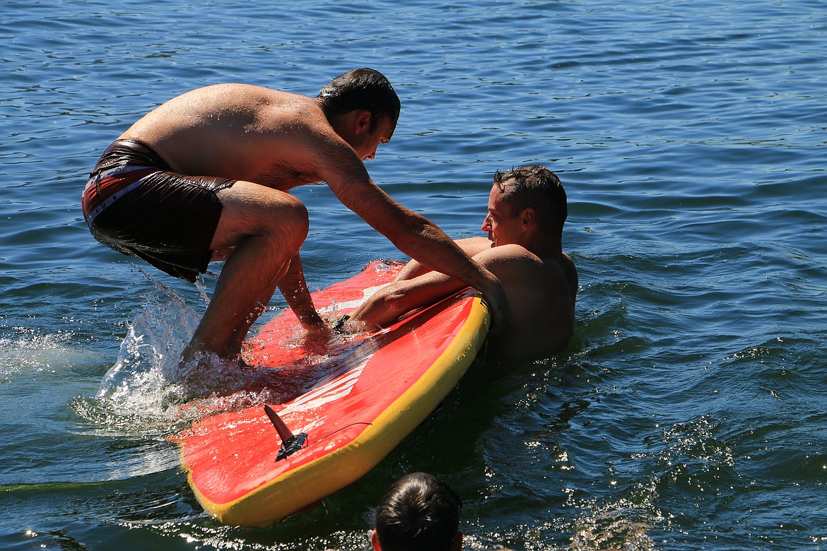 The one-flip method is typically used for a victim in the water who is fatigued but can still help get themselves onto the board. The firefighter starts with the board upside down, then pulls the victim onto the board so their arms are across it and their head is out of the water. The firefighter then uses their own weight against the board to flip it rightside-up so the victim is laying across it. The victim is situated on the board and secured to the board if needed. Whitley said if they are near the shore, it is less likely the rescuer is going to use the straps to secure the victim to the board than if they are a greater distance from land.