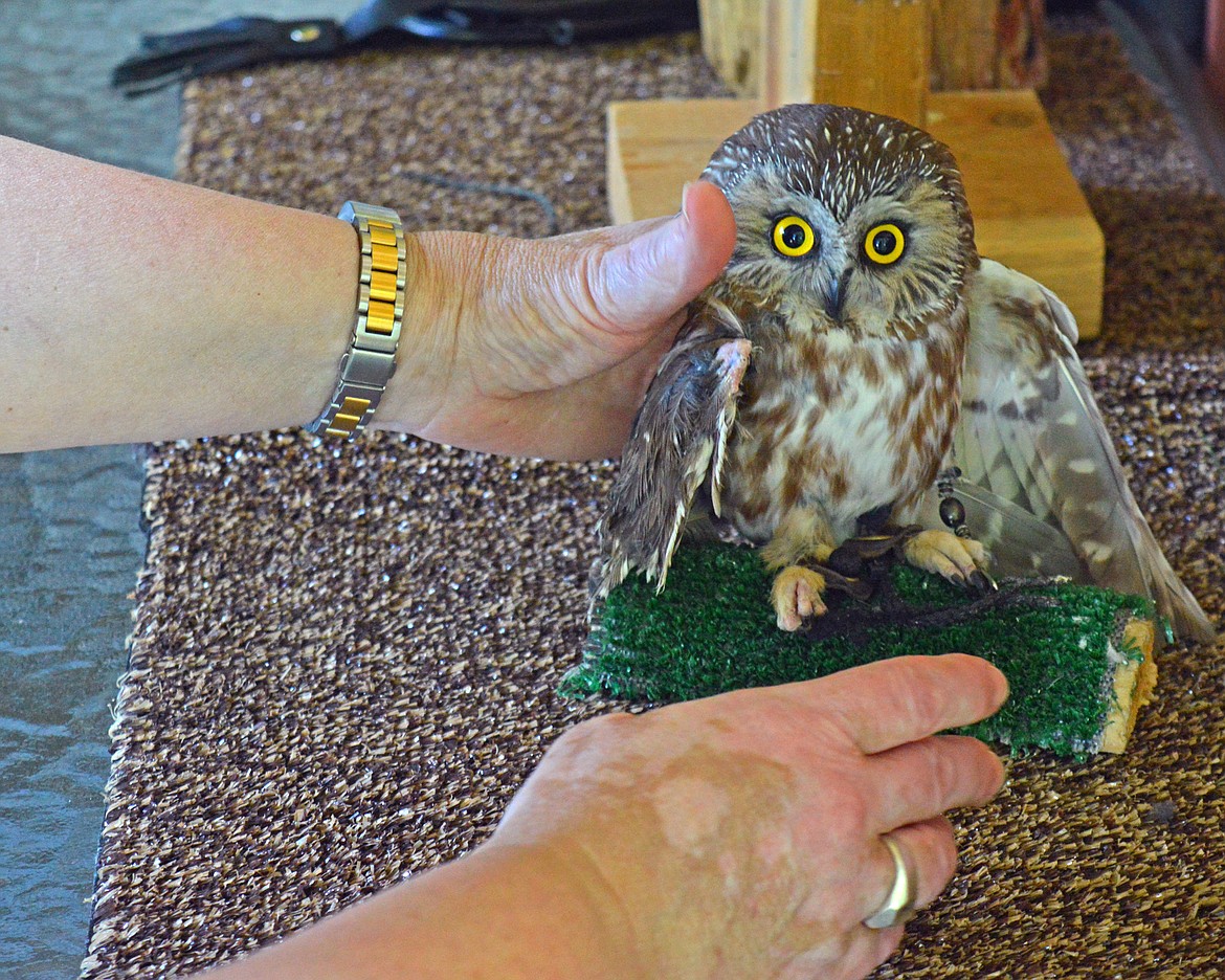 More recently, a Saw-whet owl, no bigger than a human fist, also took up permanent residence under Gabriel’s care after suffering two breaks to her right wing during her own bout with a car. Though the owl, named Tink after the famous fairy, is still a bit shy, Gabriel said she shows a lot of potential as an “education ambassador.”