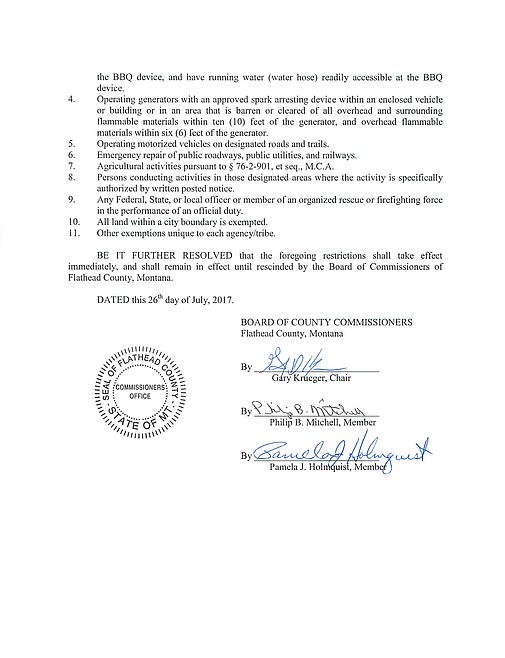 Instead of adopting the proposed resolution for Stage 2 restrictions drafted by local emergency officials, the commissioners instead opted to simplify the resolution and incorporate language from a similar fire order for Stage 2 restrictions issued for the Northern Rockies Area outside of North Dakota.