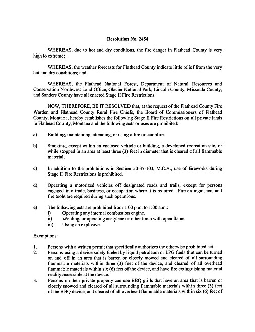 Stage 2 fire restrictions have been imposed on all private lands in Flathead County, effective immediately.