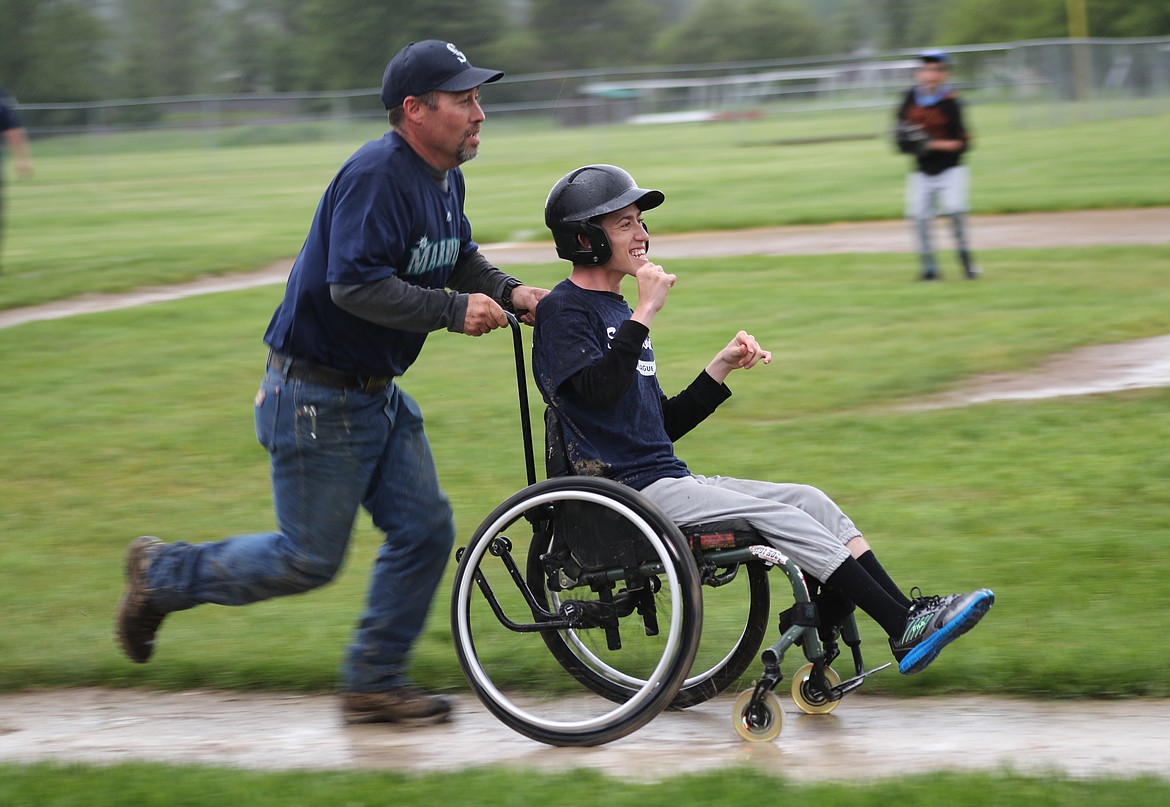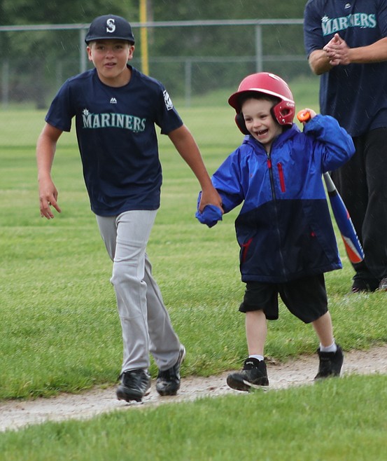 A steady rain and muddy bases mattered not to Cooper Vierra and Brayden Raffo, who got to hit a couple of times and also play the field. Their smiles told the tale, as each rounded the bases while the two Sandpoint Little League Majors teams played defense.