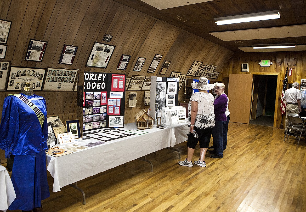 Throughout the day, the hall served as a meeting place for individuals to see old friends and reminisce about the past. One man, Dean Whitman, proudly displayed a handmade model of the log schoolhouse he attended as a youth in Worley.