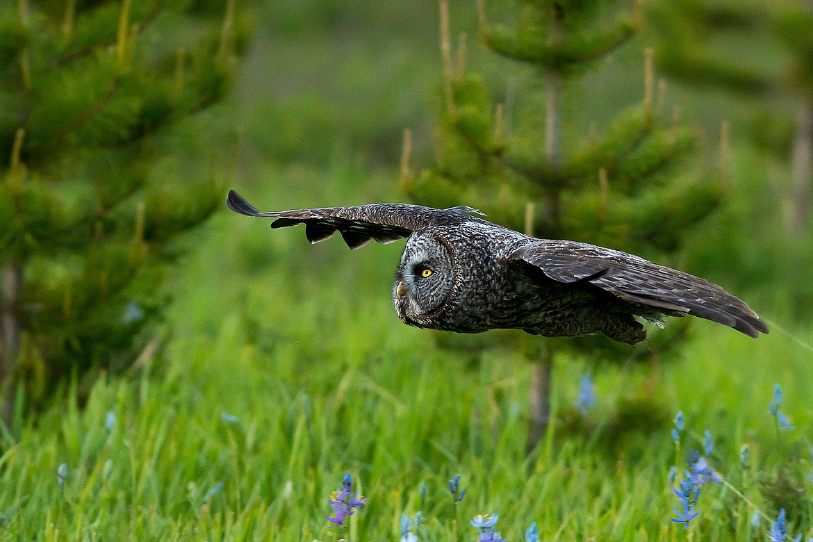 The great gray owl glided across the meadow on silent wings and landed on a snag right in front of me. The largest owl in Glacier National Park, great grays stand nearly three feet tall and are a rare sight. According to Cornell University’s “All About Birds,” great grays dwarf most owls in size, but not weight — they’re mostly feathers.