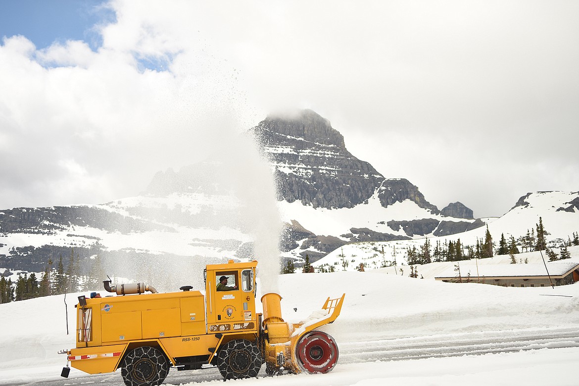 Glacier Park plow crews were clearing out the Logan Pass parking lot and making the first cuts into the Big Drift Friday on the Going-to-the-Sun Road.