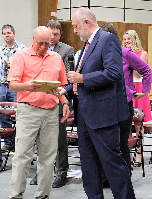 Glen Teeters is also hanging up his keys this year. Teeters taught math for 46 years at Alberton and retired from his teaching post a few years ago. He then became the school’s transportation director and a bus driver. However, he’s decided to retire and do some traveling with his wife, Donna. They plan to spend more time with their granddaughter. He was presented a plaque of recognition at graduation ceremonies in May from fellow retiree, Clay Acker.