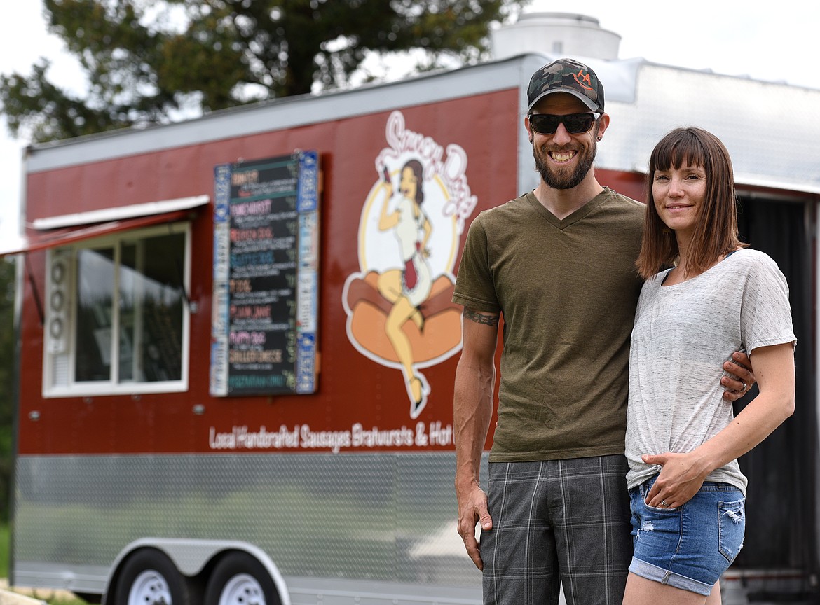 The Poes are in the fourth summer of taking their Saucy Dogs food truck on the road. The popular food trailer is a staple at area farmers markets where they serve up locally made gourmet sausages and bratwurst.