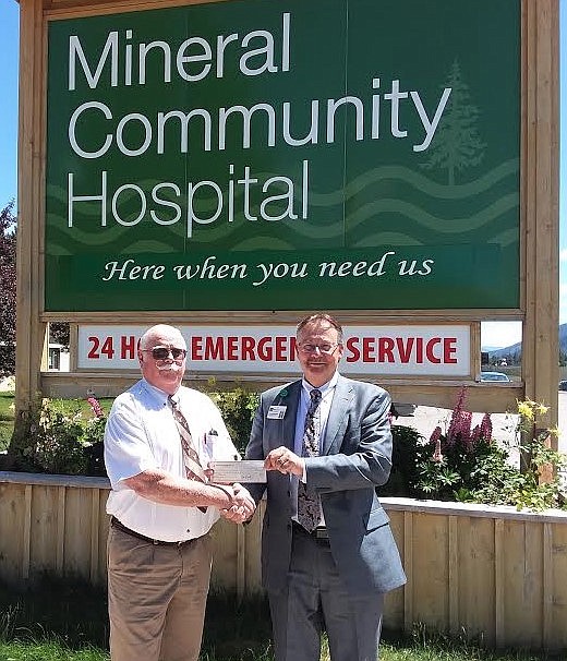 Mineral Community Hospital received a gift on Wednesday, June 14, when Dennis Cooper, a Trustee with the Montana State Elks Association presented hospital CEO Ron Gleason with a check for $2,700. Cooper drove over from Deer Lodge to present the check, which was the result of grant application made by the hospital.