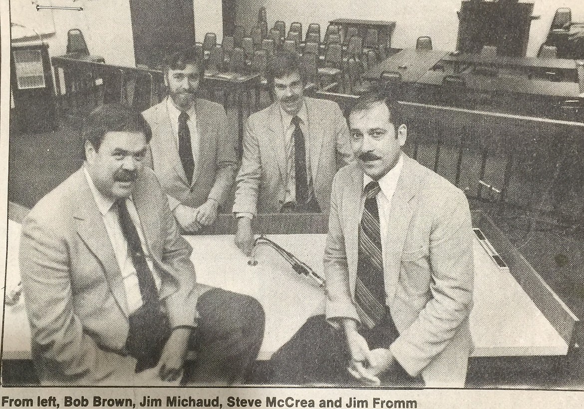 Voters, eager for change, swept them into City Hall by an election landslide in the early 1980s. Mayor Jim Fromm and Councilmen Bob Brown, Jim Michaud and Steve McCrea.