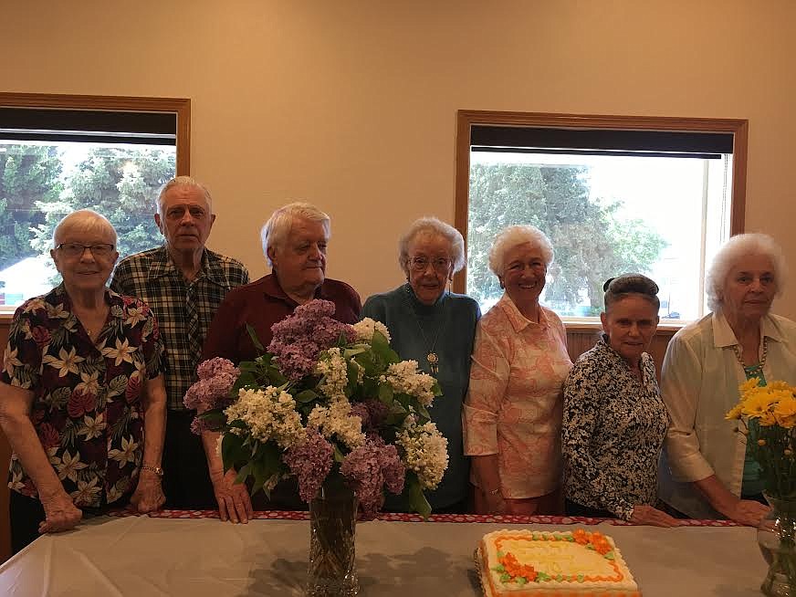 Photo by MARCELLA NELSON The Bonners Ferry High School 70th Class Reunion was held at the Chic-N-Chop this year. From left to right: Donna Dotson, Bob McGraw, Gene Lozier, Joyce Peterson, Elaine Guthrie, Marcella Nelson and Viola Sims.