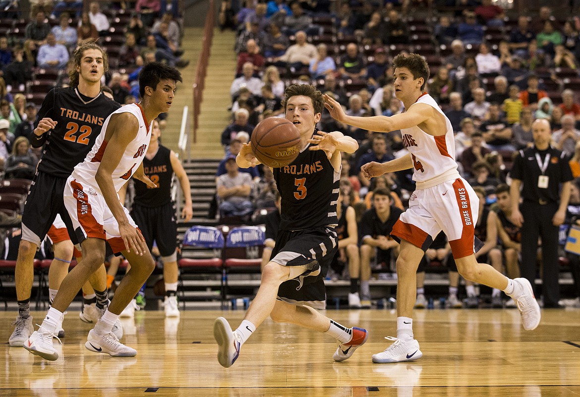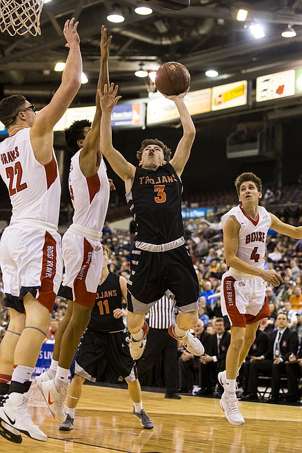 Sophomore Tanner McCliment-Call added 15 points for Post Falls. Gennett scored 11 of his 13 points in the first quarter, helping the Trojans jump out to a 24-16 lead. Gennett, whose sister, Hallie, played on Post Falls's state title team in 2013, hit all four of his shots from the field in the opening quarter, including a pair of 3-pointers.