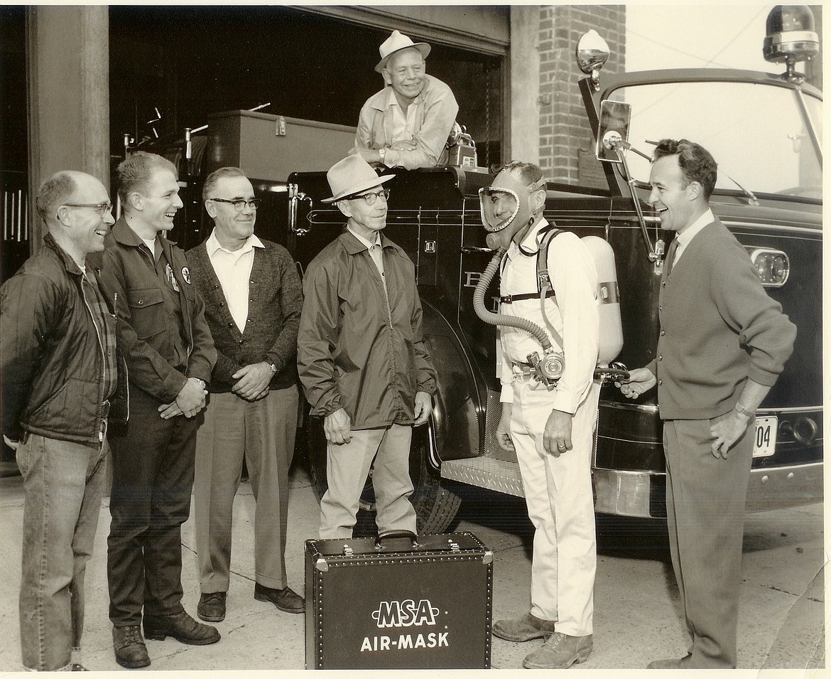 The Valley Studio had shared last week’s picture of some men beside a fire truck. They were receiving a new MSA Air Mask for use when entering burning buildings. Steve McNally and Wilma Wallace identified them, starting at the left, as Tom Hopkins (not shown), Jim Hopkins, Bob Meeker, Wes Diest, Melvin Mesenbrink, unknown, then Warren Truesdell. The man on the truck is Tom Mesenbrink (not shown). Steve says that four of these men are his uncles and the picture was taken in 1965 or 1966.