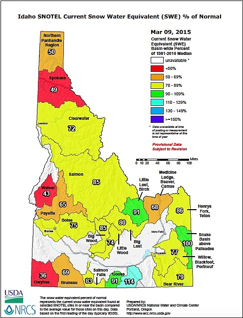 February precipitation was much above average in the Panhandle, ranging from 179 percent of normal in the Coeur d'Alene River drainage to 250 percent in the Rathdrum Creek watershed, according to the NRCS. The precipitation brought North Idaho closer to other areas of the state.