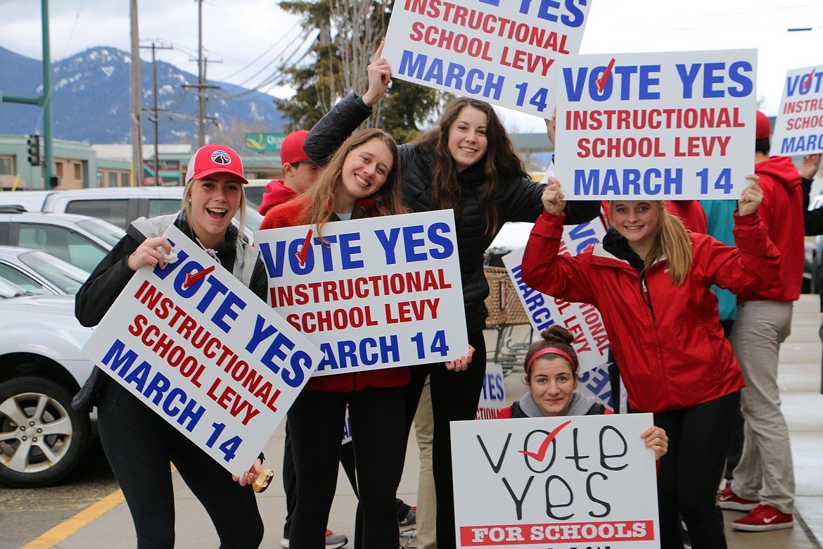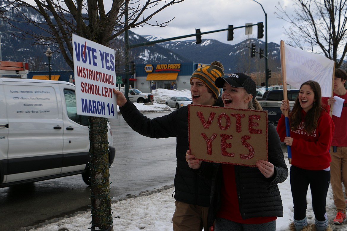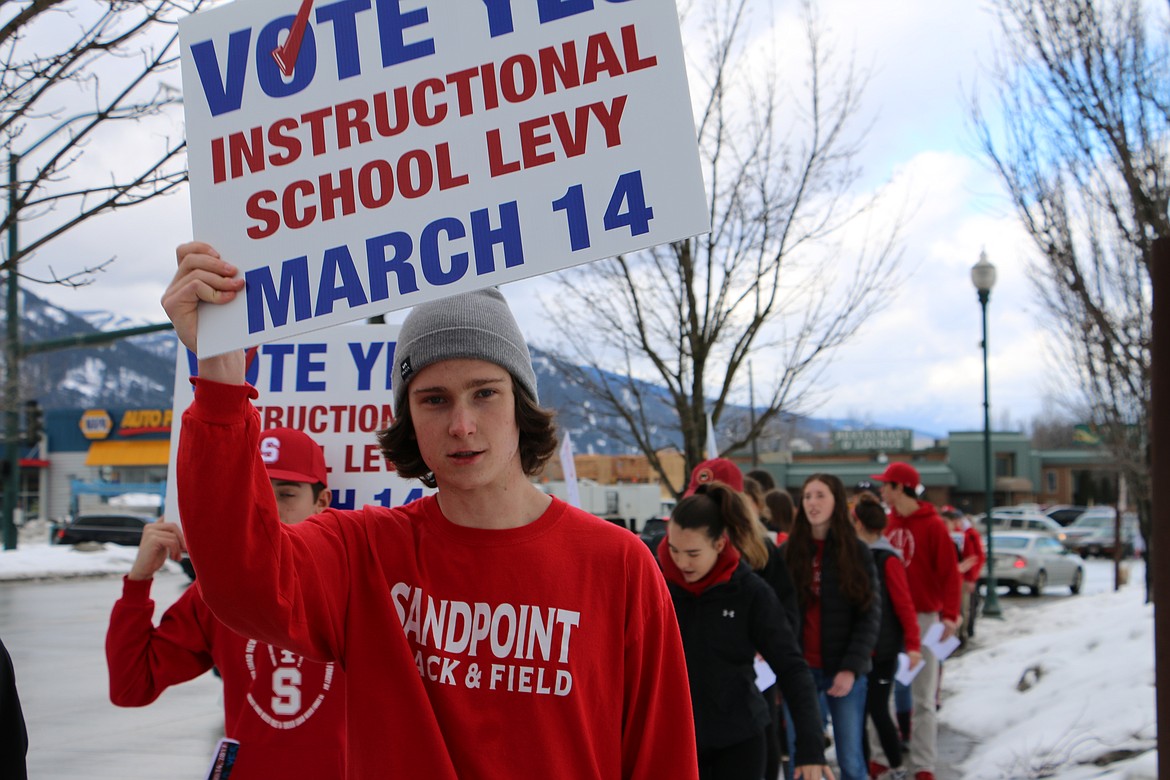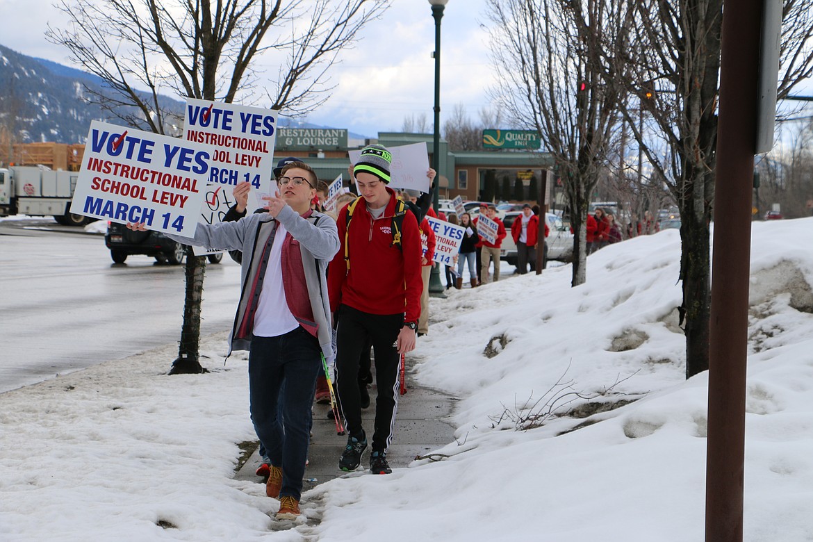 SANDPOINT — The honks and hollers of support from those in passing cars energized Sandpoint High School students Friday as more than 40 teens marched in support of the Lake Pend Oreille School District's supplemental levy.