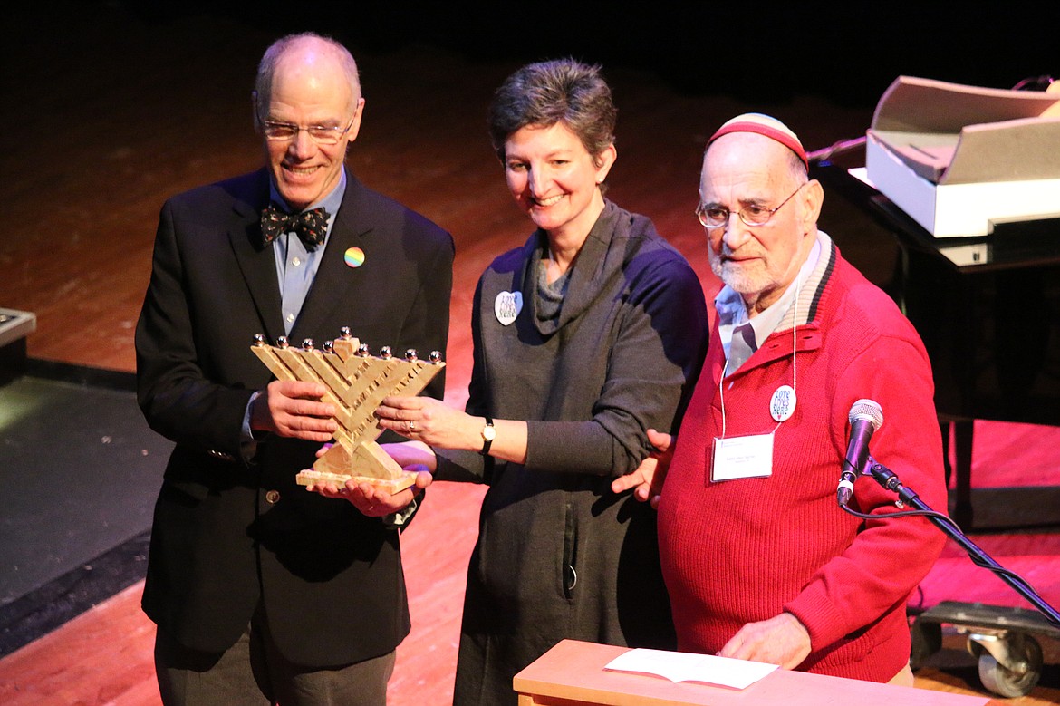 Representatives from the Glacier Jewish Community made presentations to Whitefish City Councilor Richard Hildner and Montana Gov. Steve Bullock. Each was given a Chanukah menorah made of Jerusalem stone as gifts of gratitude.