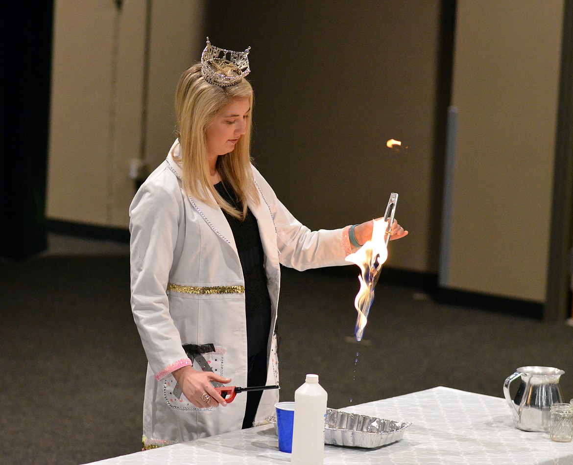 Scofield spent the morning demonstrating a few science experiments and talking with students about her experience serving as Miss Montana. She visited with students in the Advanced Placement biology, statistics and chemistry classes.