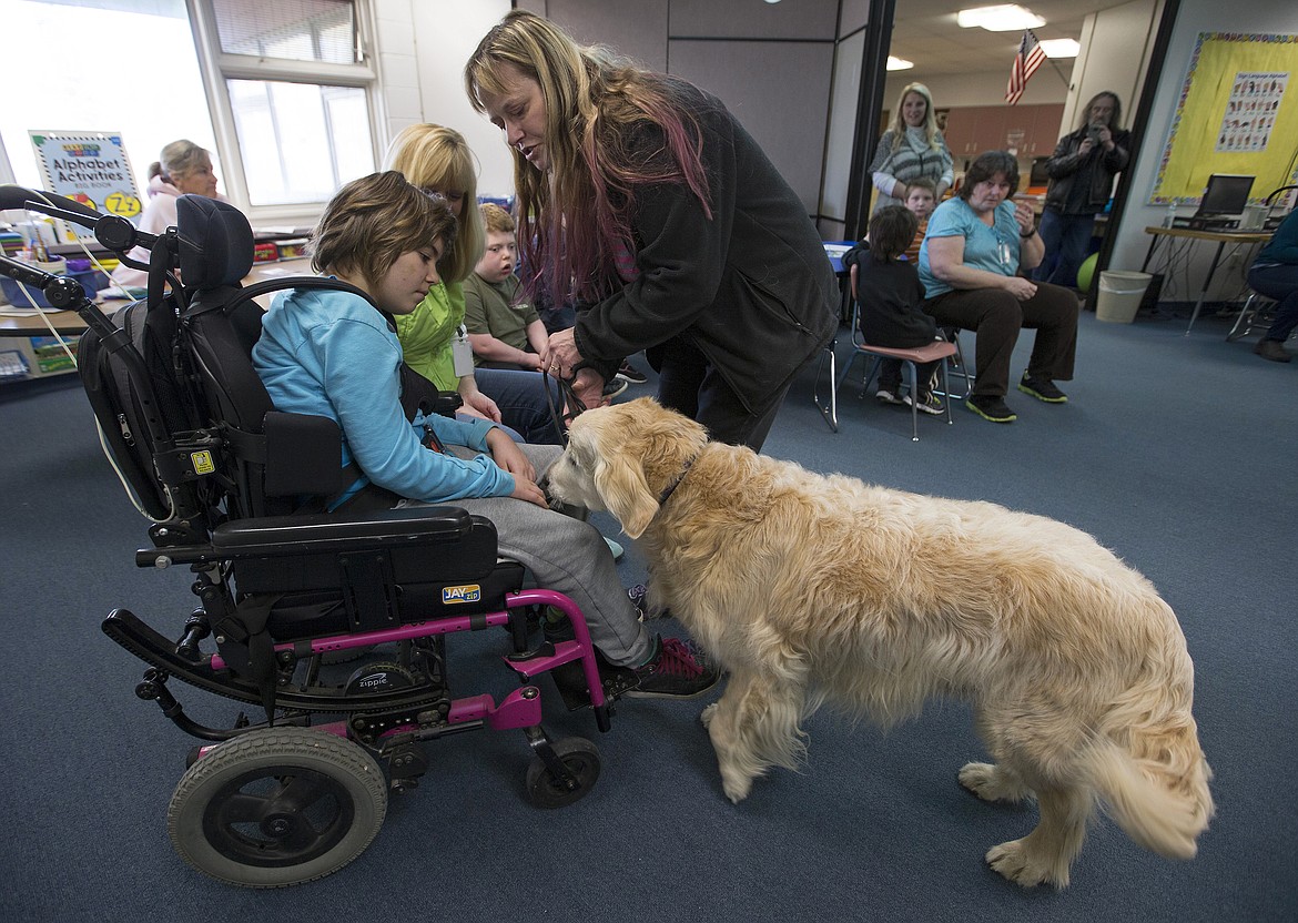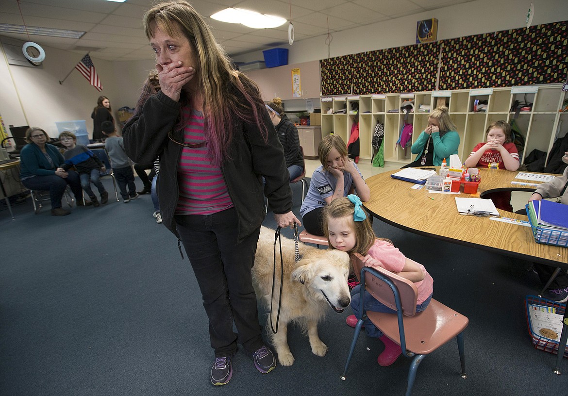 COEUR d’ALENE — Rowdy's tail was wagging even before he reached Susie Brott's classroom door Wednesday morning.