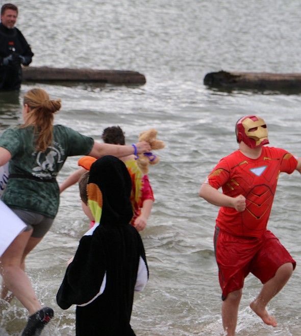 SANDPOINT — The outdoor temperature was only two degrees warmer than the water Saturday at City Beach, but that didn't stop the penguin plungers from diving into the icy water.