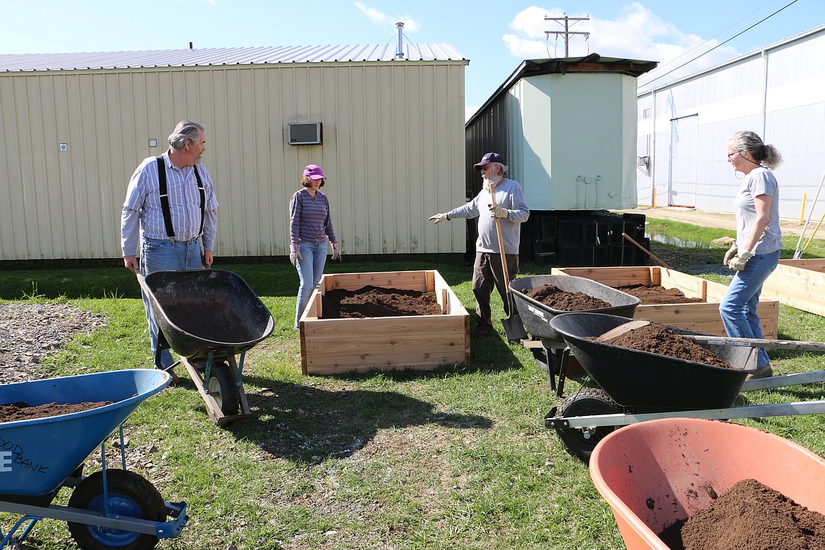 Eighteen volunteers installed new, raised garden beds and filled them with soil. Soon, the raised beds will be abundant with fresh produce for the food bank to send home with clients.