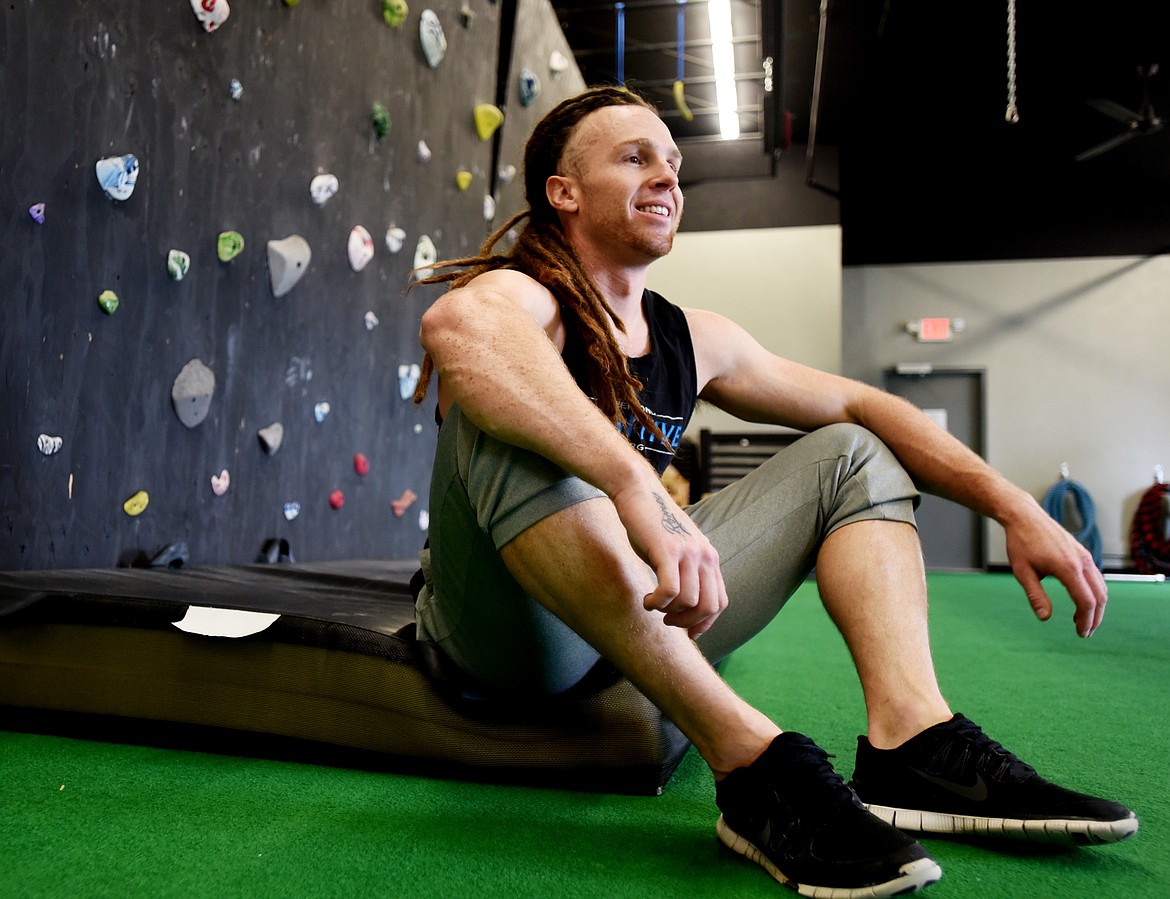 Dan Holguin at the climbing wall at Access Fitness in Kalispell on Friday, April 28.(Brenda Ahearn/Daily Inter Lake)
