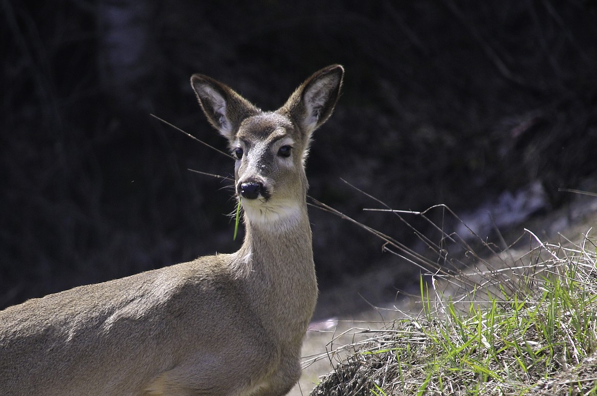 Whitetail deer are seen throughout the refuge, feeding on the fresh spring grass and preparing to give birth to fawns. Fawning season begins late May or June depending on the weather. While mule deer have remained elusive, most sightings are in the forest along Westside Road.