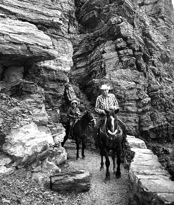 Glacier Park’s 45 horses and 21 mules were given their summer assignments. Dude, a 25-year-old horse assigned to the Many Glacier Ranger Station, once followed ranger A.D. Cannavina over a log across the Belly River. The ranger found the river too deep to ford, so he left the horse and crossed on the log. But the horse didn’t want to be left alone and crossed behind him. The average Park mule weighed 800 pounds and carried 200-pound loads across rugged terrain.