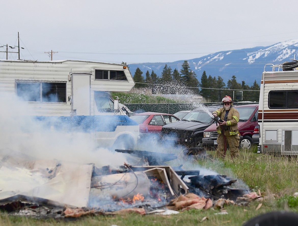 Fire consumed a junk trailer Thursday morning at the Oh’s Body Shop wrecking yard in Columbia Heights off Jensen Road. Bad Rock Fire Chief Kirk Katzenmeyer said a brush fire caught the trailer on fire.
