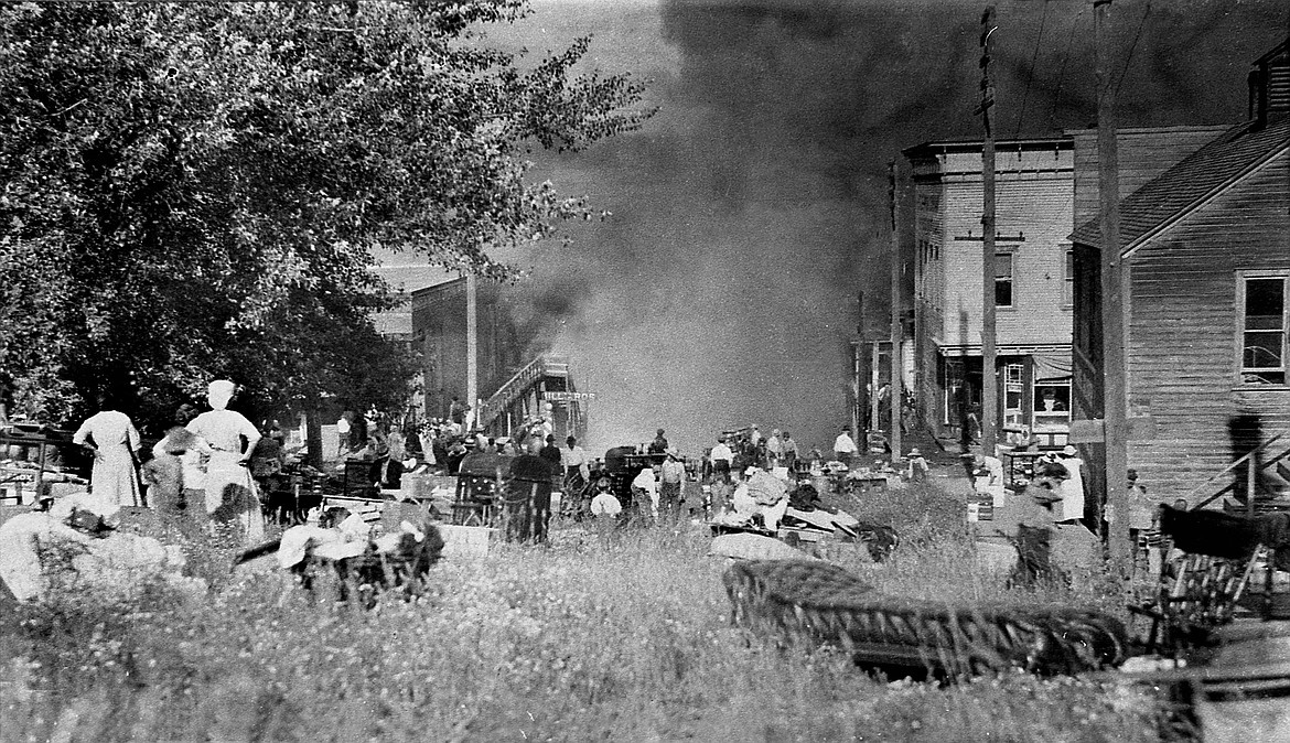 The fire ripped through the business district and burned down a majority of the homes. People threw their belongings into the streets and helplessly watched as their town went up in flames.