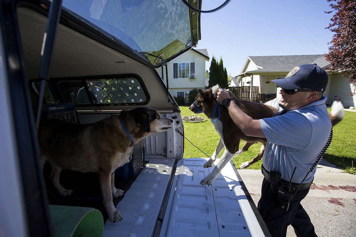 Most of the calls he handles in a 10-hour day, however, pertain to dogs at large or barking dogs. Occasionally, he helps police remove from a car a dog whose owner is going to jail, or a seemingly mean dog who won't let police serve a warrant. He takes the dogs to the Kootenai County Humane Society with which the department has a contract. It allows the Humane Society to charge the city $85 for housing a dog if the owner has not retrieved it in five days, and $20 every day thereafter the owner doesn't pick up the dog. Lower fees apply to cats, rabbits, ferrets and birds, and group rates apply for litters. A special $15 disposal fee applies if the animal is dead.