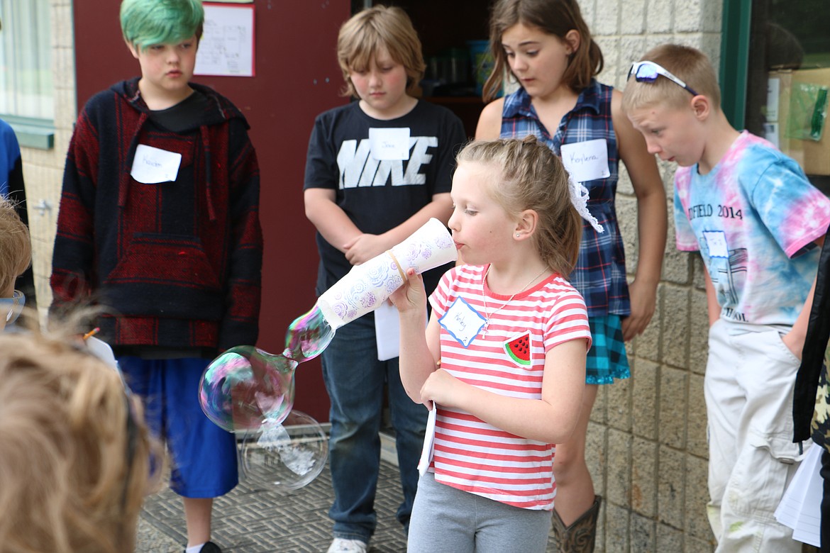 Another exhibit was "Marvelous Machines," which included the creation of simple machines like pulleys, lever, wheel and axle, and inclined plane. The "Taking the Plunge" group designed submersibles while exploring sounding poles and ocean maps. Students in the "Lights, Camera, Action" group put together a short theatrical show exploring costume and set design, music and directing, while another group explored bubble behavior and materials, creating their own bubble-makers. The green engineering group created race cars made from recycled materials, and the "How Does Your Garden Grow?" group planned and planted, learned about bees and made garden decorations.