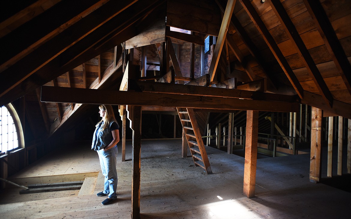 Thick stone and heavy-duty joists in the basement reveal the sturdiness of the building. The fir floors are still tight upstairs and some original fireplace mantels, stairway railings and decorative tin ceilings are still preserved inside.