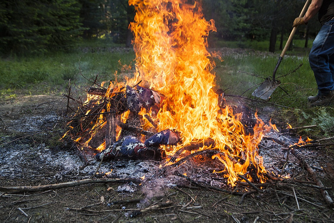 When asked by The Press what the ceremony, and the flag, signified, Bruce Orr said the poem Hampton read said it better than he could himself. Orr, a member of the veteran’s ministry who lives in Post Falls, added that he wouldn’t undo his military service for the world before looking at the pile of burning flags.