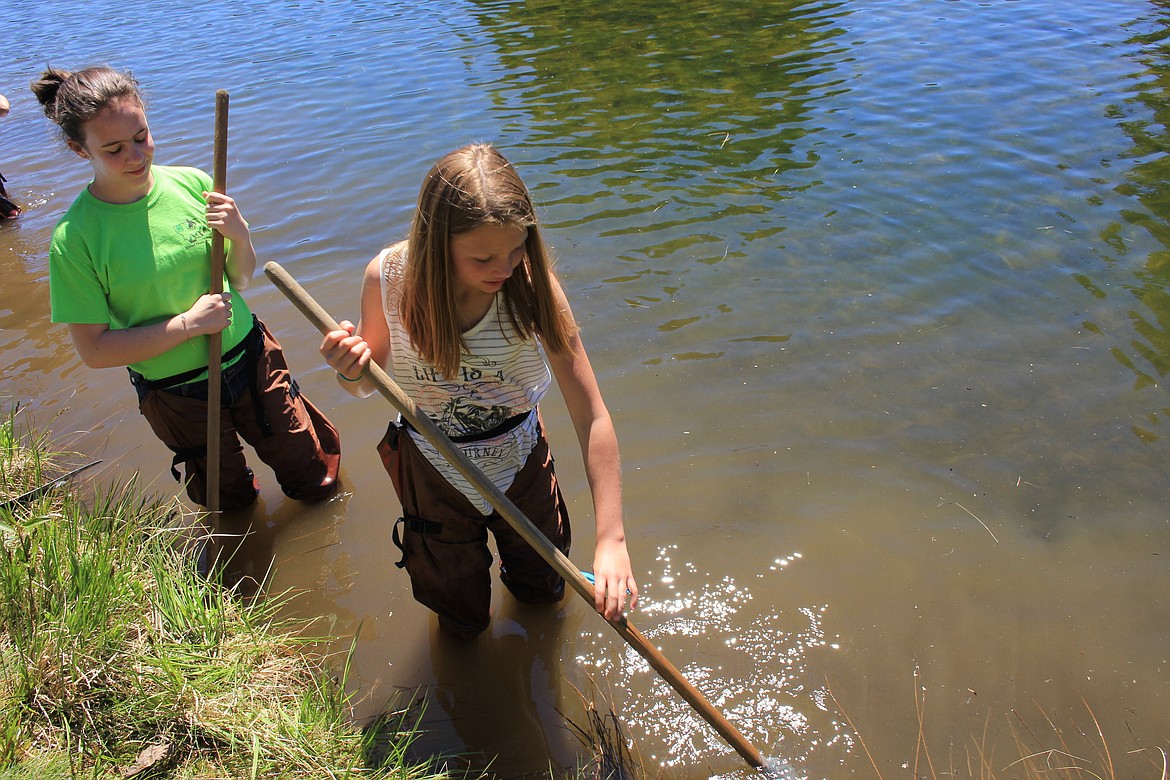 At the pond, the kids broke out into individual groups lead by the camp counselors, Superior high school students Tucker McLees, Kaylee Ray, Hannah Calloway, and Wyatt O’Day. They scooped up nets filled with water and mud and then examine it for interesting specimens. They look for things like midges, snails, mayflies, and stoneflies. Pretty much anything that crawls or flies, it would go into the ice trays for further scrutiny.