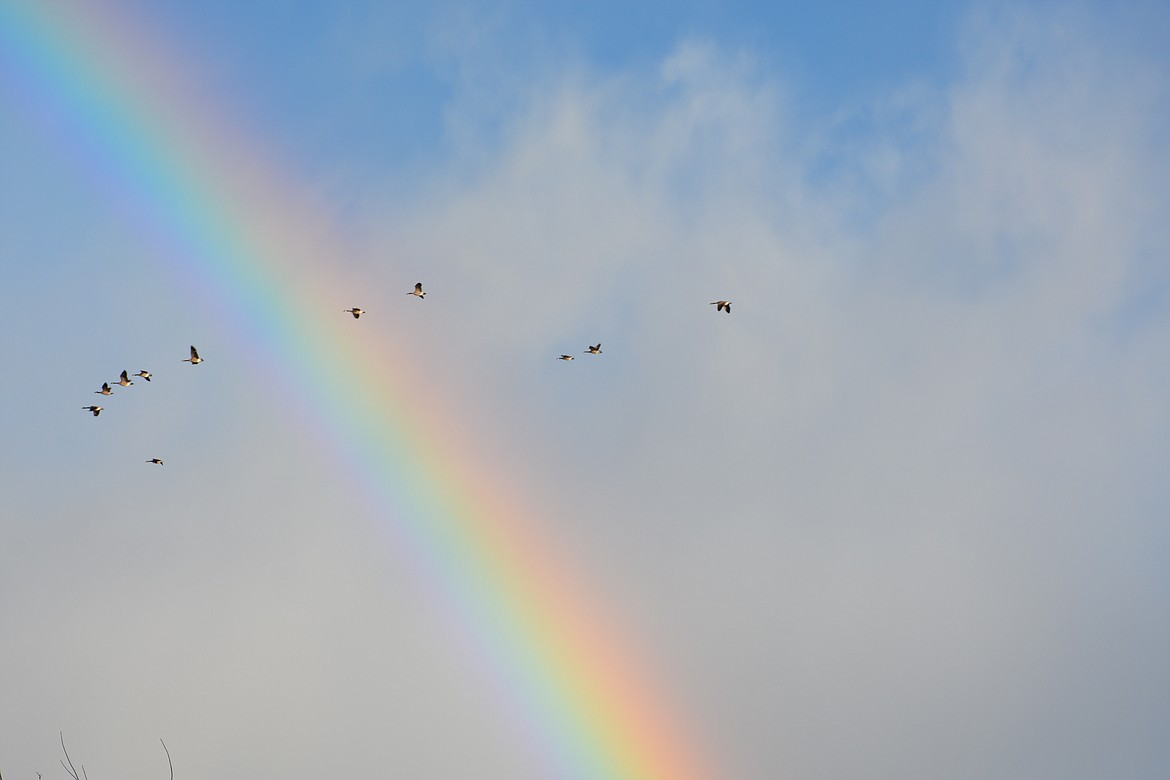 As I walked out of Safeway last week on a rainy morning that was just clearing, I noticed a beautiful phenomenon looking west toward the Selkirk Mountain, a rainbow. Who doesn’t like rainbows? Watch what happens when a rainbow suddenly, almost magically, appears on the horizon, a delicate burst of color gently washed across the sky. People stop what they’re doing. Stare. Snap photos with their iPhones. And smile!