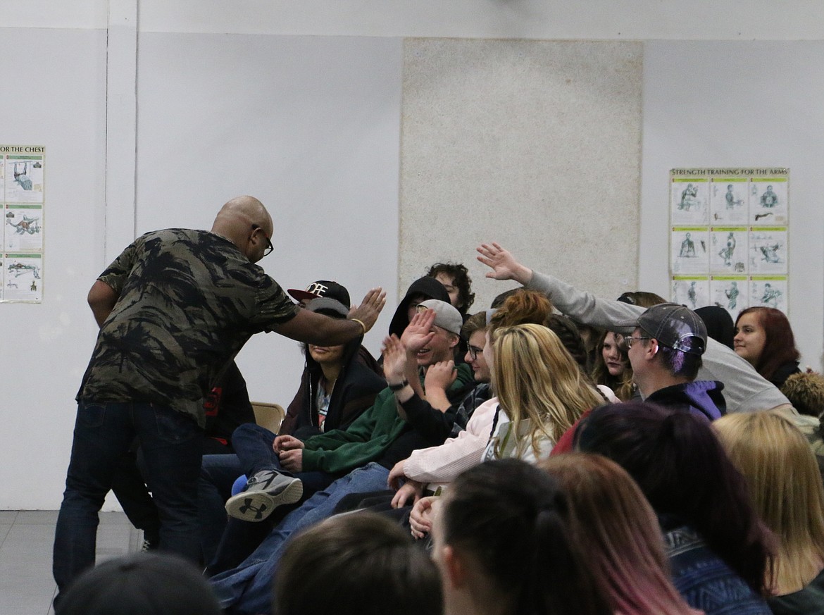 LPOHS students heard the presentation titled, "Me and My Big Mouth," which is designed to help students think about the power of their words. It also included a few songs by Thomas, who is a rising rap star.