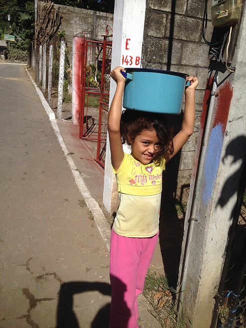 This little girl lives in San Juan Maza and is carrying water two kilometers from the only source available, a polluted steam. (Courtesy photo)