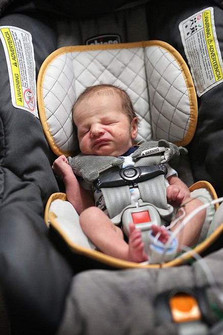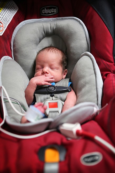 Jedidiah Hall undergoes a carseat test at Kalispell Regional Medical Center’s NICU on Wednesday morning. Hall weighs in at 5 pounds, 12 ounces and was born prematurely at 35 weeks and two days. (Mackenzie Reiss/Daily Inter Lake)