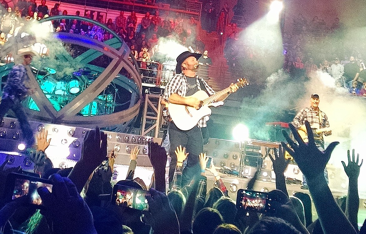 A few times Brooks, ringing wet in sweat, even had to bend over to catch his breath from electrifying the crowd on all sides.