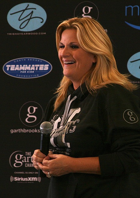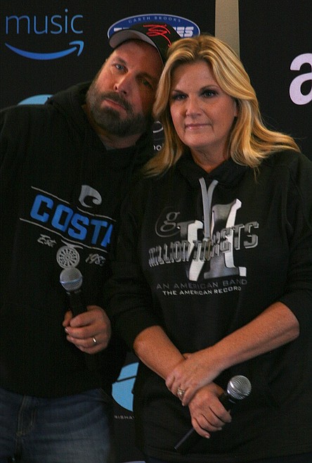On Friday, moments before a press conference, Brooks was joined by his wife and fellow country star Trisha Yearwood as the two teamed up for concerts this weekend at the Arena.
