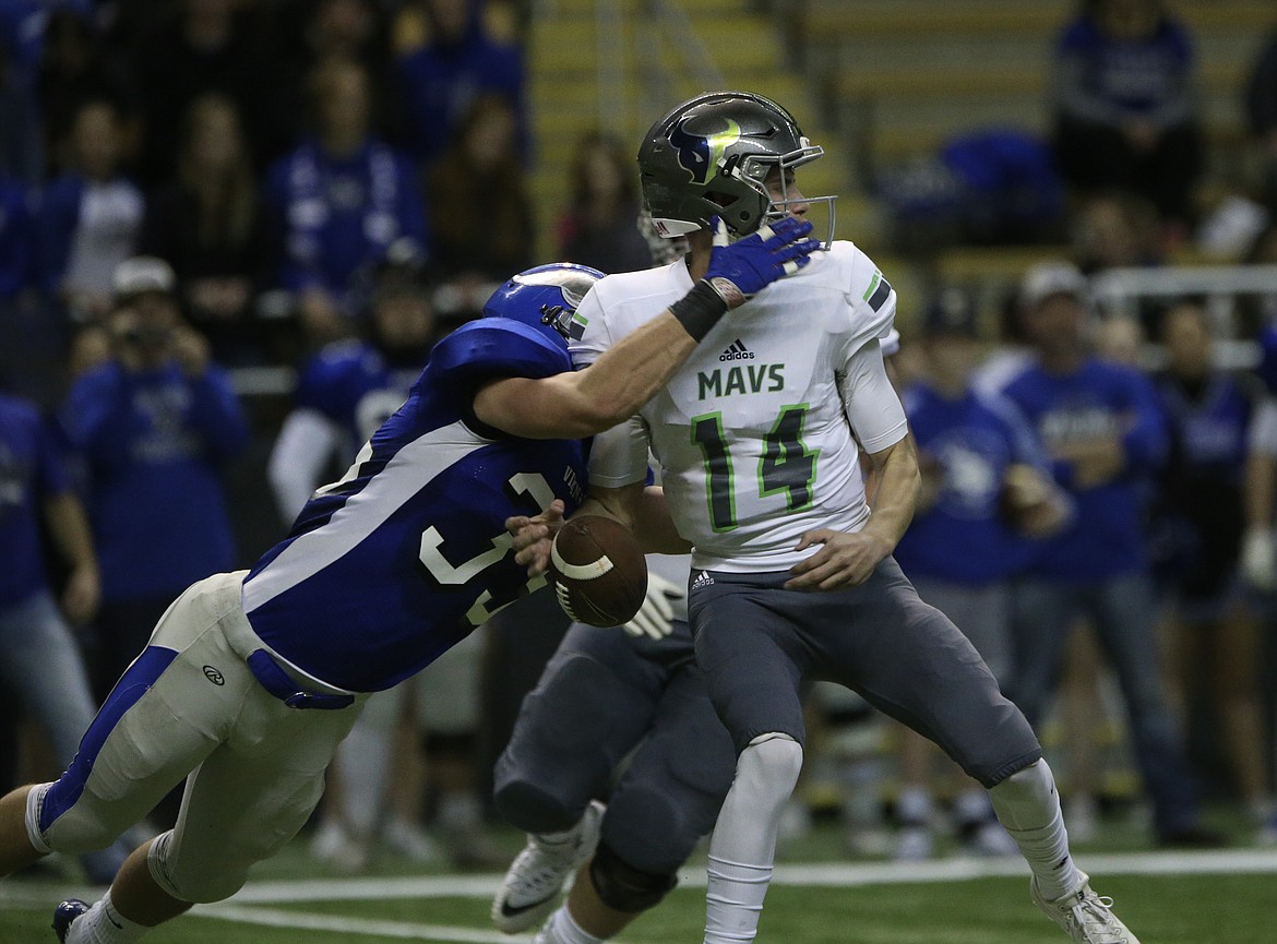 The Mavericks of Meridian sacked star Coeur d’Alene quarterback Colson Yankoff three times, blocked a field goal and held the Vikings — boasting one of the best offensive lines in school history — to 41 rushing yards.