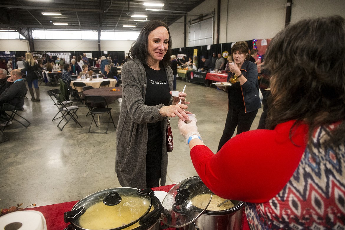 The Coeur d'Alene woman was among roughly 1,200 people who enjoyed samples of 43 soups made by representatives of churches, businesses and agencies for the eighth annual Souport the End of Homelessness fundraiser for St. Vincent de Paul's warming centers Thursday at the Kootenai County Fairgrounds. The event raised about $15,000.