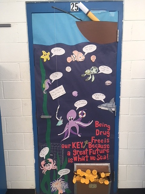 We are thankful for our counselor, Ms. Norwood, who sponsors Red Ribbon Week every year to encourage our students to stay away from drugs and alcohol. She creates a yearly door decorating competition for students to focus on staying drug free. This year we had some great doors and the students were creating great themes and sayings about how to stay drug free during Halloween.